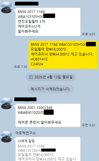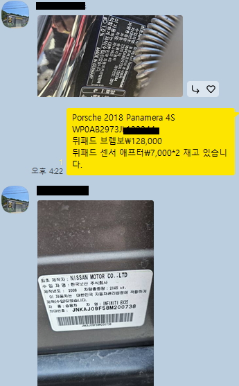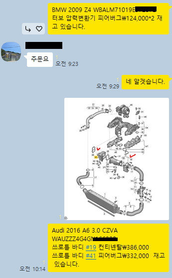 차대번호와 필요부품 확인후 필요한 부분 전화 상담합니다